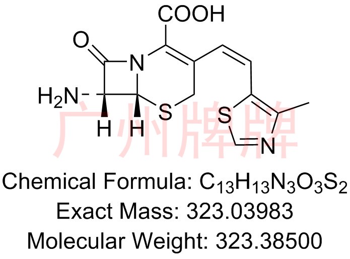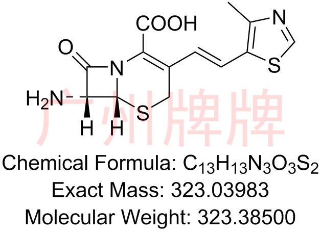 CAS No:155723-02-7||Chemical Formula:C13H13N3O3S2||Molecular Weight:323.38500||Exact Mass:323.03983||(6R,7R)-7-amino-3-((Z)-2-(4-methylthiazol-5-yl)vinyl)-8-oxo……