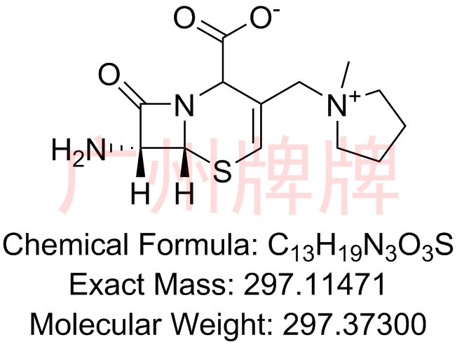CAS No:112533-07-0||Chemical Formula:C13H19N3O3S||Molecular Weight:297.373||Exact Mass:297.11471||(6R,7R)-7-amino-3-((1-methylpyrrolidin-1-ium-1-yl)methyl)-8-ox……