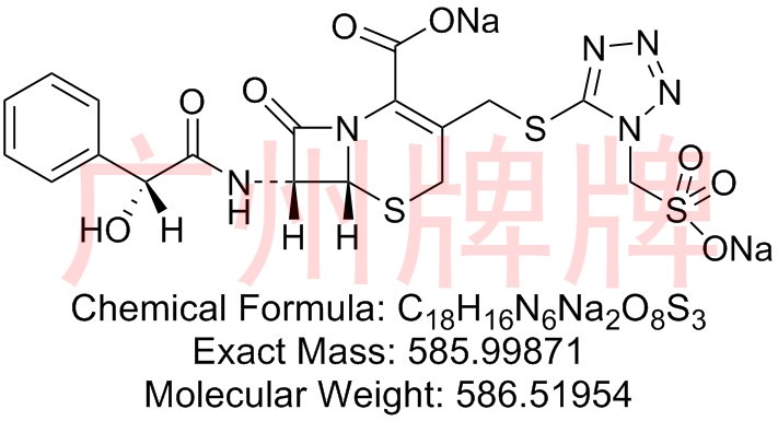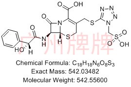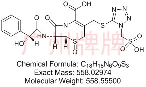 CAS No:N/A||Chemical Formula:C18H18N6O9S3||Molecular Weight:558.02974||Exact Mass:558.56532 ||(6R,7R)-7-((R)-2-hydroxy-2-phenylacetamido)-8-oxo-3-(((1-(sulfomet……