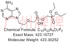 CAS No:N/A||Chemical Formula:C16H26N5O6P||Molecular Weight:415.38676||Exact Mass:415.16207||((((2-(6-amino-9H-purin-9-yl)ethoxy)methyl)(ethoxy)phosphoryl)oxy)me……