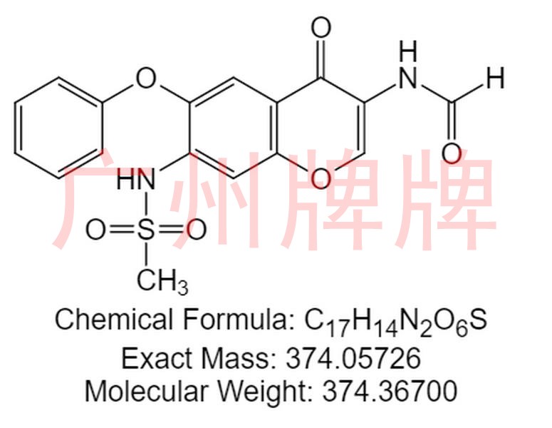 CAS No:123663-49-0 ||Chemical Formula:C17H14N2O6S ||Molecular Weight:374.36700 ||Exact Mass:374.05726 ||N-(7-(Methylsulfonamido)-4-oxo-6-phenoxy-4H-chromen-3-yl)formamide