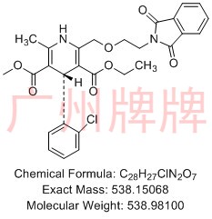 CAS No:140171-66-0||Chemical Formula:C19H23ClN2O5||Molecular Weight:394.85200|Exact Mass:394.12955||dimethyl(4RS)-2-((2-aminoethoxy)methyl)-4-(2-chlorophenyl)-6……