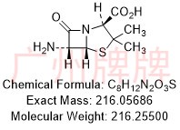 CAS No:551-16-6||Chemical Formula:C8H12N2O3S||Molecular Weight:216.25500||Exact Mass:216.05686||(2S,5R,6R)-6-amino-3,3-dimethyl-7-oxo-4-thia-1-azabicyclo[3.2.0]……