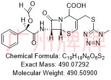 CAS No:N/A||Chemical Formula:C19H18N6O7S2||Molecular Weight:506.50800||Exact Mass:506.06784||(6R,7R)-7-((R)-2-(formyloxy)-2-phenylacetamido)-3-(((1-methyl-1H-te……