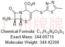 CAS No:N/A ||Chemical Formula:C11H12N4O3S3 ||Molecular Weight:344.42200 ||Exact Mass:344.00715||(6R,7R)-7-amino-3-(((5-methyl-1,3,4-thiadiazol-2-yl)thio)methyl)……