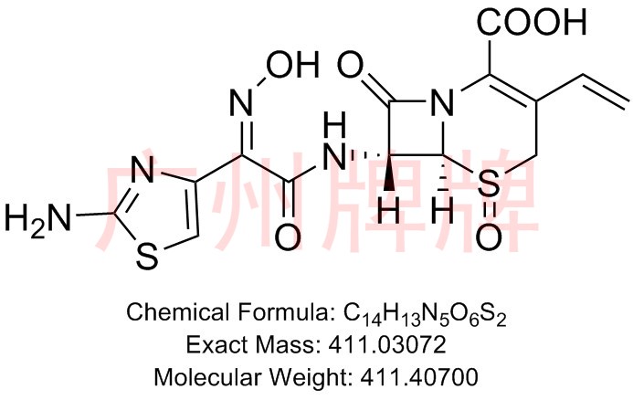 CAS No:N/A||Chemical Formula:C14H13N5O6S2||Molecular Weight:411.40700||Exact Mass:411.03072||(6S,7R)-7-((Z)-2-(2-aminothiazol-4-yl)-2-(hydroxyimino)acetamido)-8……