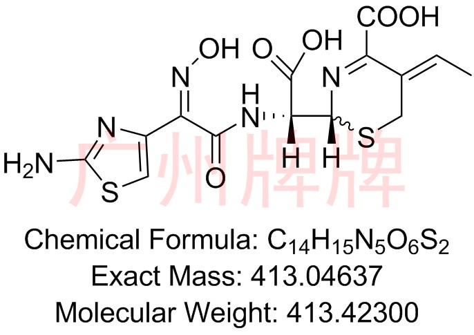 CAS No:N/A||Chemical Formula:C14H15N5O6S2||Molecular Weight:413.42300||Exact Mass:413.04637||(6R,7R)-7-((Z)-2-(2-aminothiazol-4-yl)-2-(hydroxyimino)acetamido)-3……