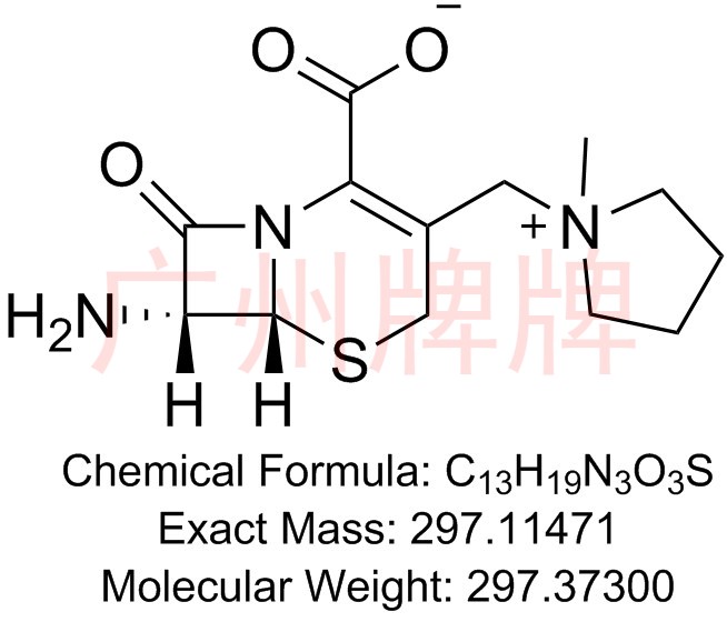 CAS No:103296-32-8,103121-85-3(hydrochloride)||Chemical Formula:C13H19N3O3S||Molecular Weight:297.37300||Exact Mass:297.11471||(6R,7R)-7-amino-3-((1-methylpyrro……