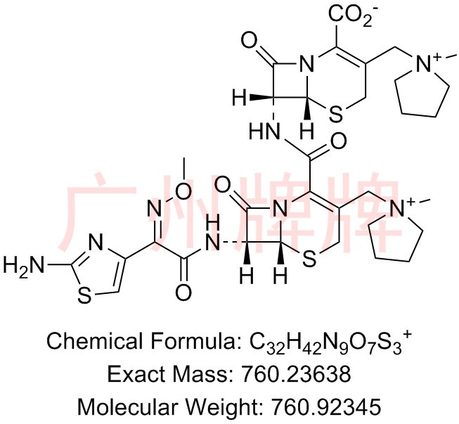 CAS No:N/A | Chemical Formula:C32H42N9O7S3+ |Molecular Weight:760.92345|Exact Mass:760.23638|(6R,7R)-7-((6R,7R)-7-((Z)-2-(2-aminothiazol-4-yl)-2-(methoxyimino)a……