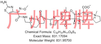 CAS No:N/A||Chemical Formula:C36H51N12O7S4+||Molecular Weight:892.12045||Exact Mass:891.28810||2-(((Z)-2-(2-(2-(((Z)-2-(2-aminothiazol-4-yl)-2-(methoxyimino)ace……