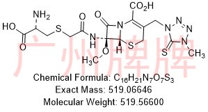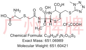 CAS No:N/A ||Chemical Formula:C32H40N14O13S6 ||Molecular Weight:1021.117 ||Exact Mass:1020.12235 ||(6R,7S)-7-(2-(((S)-2-amino-3-(((S)-1-carboxy-2-((2-(((6R,7S)-2-carboxy-7-methoxy-3-(((1-methyl-1H-tetrazol-5-yl)thio)methyl)-8-oxo-5-thia-1-azabicyclo
