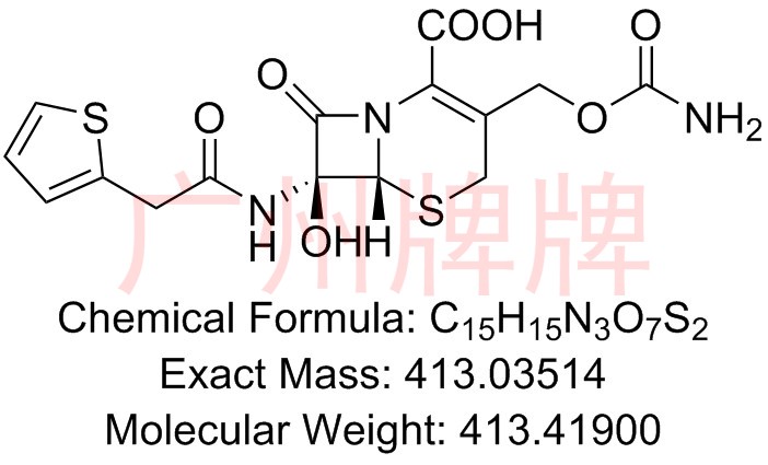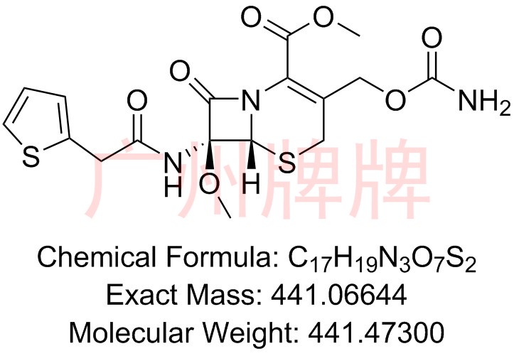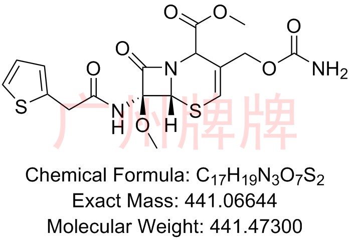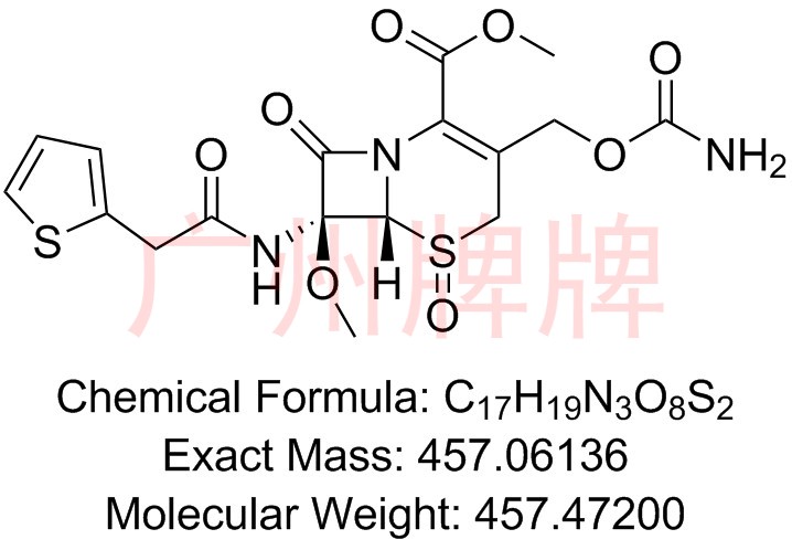 CAS No:N/A||Chemical Formula:C30H29N5O12S4||Molecular Weight:779.82500||Exact Mass:779.06955||(6R,7S)-3-((((6R,7S)-3-((carbamoyloxy)methyl)-7-hydroxy-8-oxo-7-(2-(thiophen-2-yl)acetamido)-5-thia-1-azabicyclo[4.2.0]oct-2-ene-2-carbonyl)oxy)methyl)-7-methoxy-8-oxo-7-(2-(thiophen-2-yl)acetamido)-5-thia-1-azabicyclo[4.2.0]oct-2-ene-2-carboxylic acid