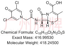 CAS No:N/A||Chemical Formula:C35H30Cl4N10O8S6||Molecular Weight:1052.84700||Exact Mass:1049.93264||3-((6R,7R)-7-(2-(3,5-dichloro-4-oxopyridin-1(4H)-yl)acetamido)-3-(((5-methyl-1,3,4-thiadiazol-2-yl)thio)methyl)-8-oxo-5-thia-1-azabicyclo[4.2.0]oct-2-ene-2-carbonyl)-2-((2-(3,5-dichloro-4-oxopyridin-1(4H)-yl)acetamido)methyl)-5-(((5-methyl-1,3,4-thiadiazol-2-yl)thio)methyl)-3,6-dihydro-2H-1,3-thiazine-4-carboxylic acid