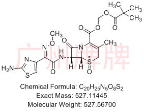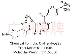 CAS No:N/A||Chemical Formula:C20H25N5O8S2||Molecular Weight:527.56700||Exact Mass:527.11445||(pivaloyloxy)methyl (6R,7R)-7-((E)-2-(2-aminothiazol-4-yl)-2-(metho……