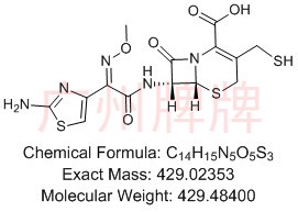 CAS No.:120882-22-6||Chemical Formula:C14H15N5O5S3||Molecular Weight:429.49440||Exact Mass:429.02353||(6R,7R)-7-((Z)-2-(2-aminothiazol-4-yl)-2-(methoxyimino)ace……