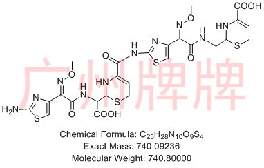CAS No:N/A||Chemical Formula:C25H28N10O9S4||Molecular Weight:740.80000||Exact Mass:740.09236||2-(((Z)-2-(2-(2-(((Z)-2-(2-aminothiazol-4-yl)-2-(methoxyimino)acet……