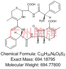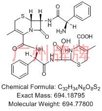 CAS No:N/A||Chemical Formula:C32H34N6O8S2"||Molecular Weight:694.77800||Exact Mass:694.18795||(6R,7R)-7-((2R)-2-(2-(((R)-2-amino-2-phenylacetamido)(carboxy)meth……