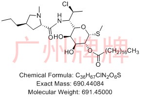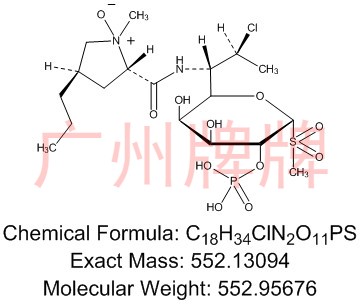 CAS No:N/A||Chemical Formula:Chemical Formula:C36H66Cl2N4O15P2S2||Molecular Weight:991.90452||Exact Mass:990.28184||2,2′-oxybis(hydroxyphosphoryl)bis[methyl 7-chloro-6,7,8-trideoxy-6-[[[(2S,4R)-1-methyl-4-propylpyrrolidin-2-yl]carbonyl]amino]-1-thio-L-threo-α-D-galacto-octopyranoside] (diclindamycin pyrophosphate)