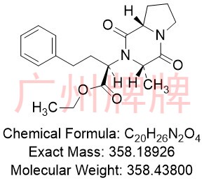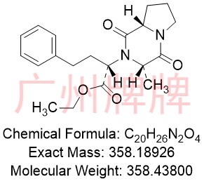 CAS No:1356932-13-2||Chemical Formula:C18H24N2O5||Molecular Weight:376.45300||Exact Mass:376.19982||((R)-1-ethoxy-1-oxo-4-phenylbutan-2-yl)-L-alanyl-L-proline
