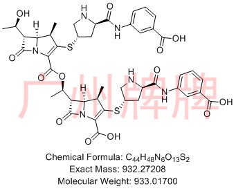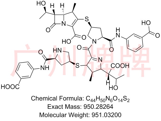 CAS No:N/A||Chemical Formula:C44H50N6O14S2||Molecular Weight:951.03200||Exact Mass:950.28264||(4R,5S,6S)-3-(((3S,5S)-5-((3-((2S,4S)-4-(((4R)-2-carboxy-5-((2R)-1……