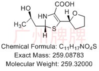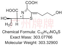 CAS No:N/A||Chemical Formula:C12H17NO6S||Molecular Weight:303.32900||Exact Mass:303.07766||(Z)-2-((1S,2R)-1-carboxy-2-hydroxypropyl)-5-(4-hydroxybutylidene)-2,5……