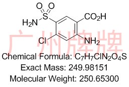 CAS No:3086-91-7||Chemical Formula:C7H7ClN2O4S||Molecular Weight:250.65300||Exact Mass:249.98151||2-amino-4-chloro-5-sulfamoylbenzoic acid