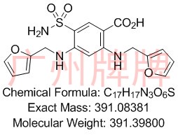CAS No:5046-19-5||Chemical Formula:C17H17N3O6S||Molecular Weight:391.39800||Exact Mass:391.08381||2,4-bis((furan-2-ylmethyl)amino)-5-sulfamoylbenzoic acid