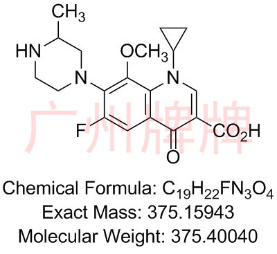 CAS No:1029364-65-5||Chemical Formula:C19H22FN3O4||Molecular Weight:375.40040||Exact Mass:375.15943||1-cyclopropyl-6-fluoro-8-methoxy-7-(2-methylpiperazin-1-yl)……