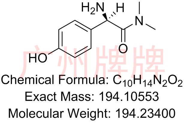 CAS No:N/A ||Chemical Formula:C10H14N2O2 ||Molecular Weight:194.23400 ||Exact Mass:194.10553||(R)-2-amino-2-(4-hydroxyphenyl)-N,N-dimethylacetamide