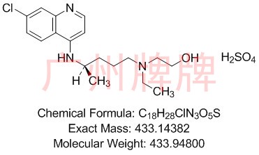 CAS No:747-36-4||Chemical Formula:C18H28ClN3O5S||Molecular Weight:433.94800||Exact Mass:433.14382||2-[[(4RS)-4-[(7-Chloroquinolin-4-yl)amino]pentyl](ethyl)amino……
