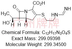 CAS No:74431-23-5||Chemical Formula:C12H17N3O4S||Molecular Weight:299.34500||Exact Mass:299.09398||(5R,6S)-3-((2-formimidamidoethyl)thio)-6-((R)-1-hydroxyethyl)……