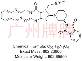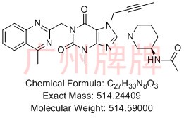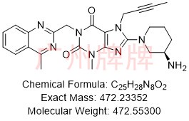 CAS No:668270-11-9||Chemical Formula:C25H28N8O2||Molecular Weight:472.55300||Exact Mass:472.23352||(S)-8-(3-aminopiperidin-1-yl)-7-(but-2-yn-1-yl)-3-methyl-1-((……