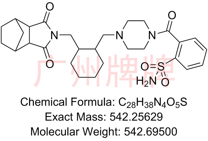 CAS No:367514-87-2||Chemical Formula:C28H36N4O2S||Molecular Weight:492.68200||Exact Mass:492.25590||(3aR,4S,7R,7aS)-2-(((1R,2R)-2-((4-(benzo[d]isothiazol-3-yl)p……
