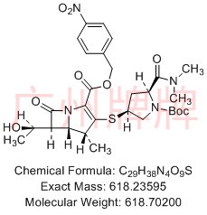 CAS No:N/A||Chemical Formula:C29H38N4O9S||Molecular Weight:618.70200||Exact Mass:618.23595||4-nitrobenzyl(4R,5S,6S)-3-(((3S,5S)-1-(tert-butoxycarbonyl)-5-(dimet……
