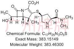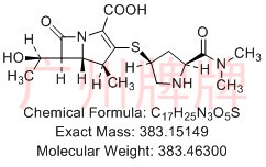 CAS No:119478-56-7||Chemical Formula:C17H25N3O5S||Molecular Weight:383.46300||Exact Mass:383.15149||(4R,5S,6S)-3-(((3S,5S)-5-(dimethylcarbamoyl)pyrrolidin-3-yl)……
