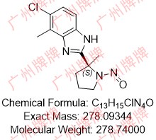 CAS NO:N/A|Chemical Formula: C13H15ClN4O|Molecular Weight: 278.74000|Exact Mass:278.09344|(S)-5-chloro-4-methyl-2-(2-methyl-1-nitrosopyrrolidin-2-yl)-1H-benzo[……