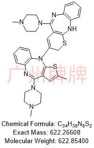 CAS No:N/A||Chemical Formula:C34H38N8S2||Molecular Weight:622.85400||Exact Mass:622.26608||3-(2-methyl-4-(4-methylpiperazin-1-yl)-10H-benzo[b]thieno[2,3-e][1,4]……