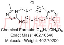 CAS No:N/A||Chemical Formula:C14H19ClN6O6 ||Molecular Weight:402.79200||Exact Mass:402.10546 ||1-((1-chloro-3-(2-methyl-5-nitro-1H-imidazol-1-yl)propan-2-yl)oxy……