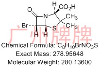 CAS No:75527-87-6||Chemical Formula:C8H10BrNO5S||Molecular Weight:312.134||Exact Mass:310.94631||(2S,5R,6R)-6-bromo-3,3-dimethyl-7-oxo-4-thia-1-azabicyclo[3.2.0……