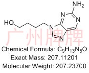 CAS No:N/A||Chemical Formula:C9H13N5O||Molecular Weight:207.23700||Exact Mass:207.11201 ||4-(2-amino-9H-purin-9-yl)butan-1-ol