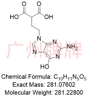 CAS No:234110-22-6||Chemical Formula:C10H11N5O5||Molecular Weight:281.22800||Exact Mass:281.07602 ||2-(2-(2-amino-6-hydroxy-9H-purin-9-yl)ethyl)malonic acid