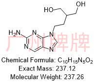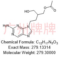 CAS No:104227-87-4||Chemical Formula:C14H19N5O4||Molecular Weight:321.33700||Exact Mass:321.14370?||2-[2-(2-Amino-9H-purin-9-yl)ethyl]-1,3-propanediol diacetate……